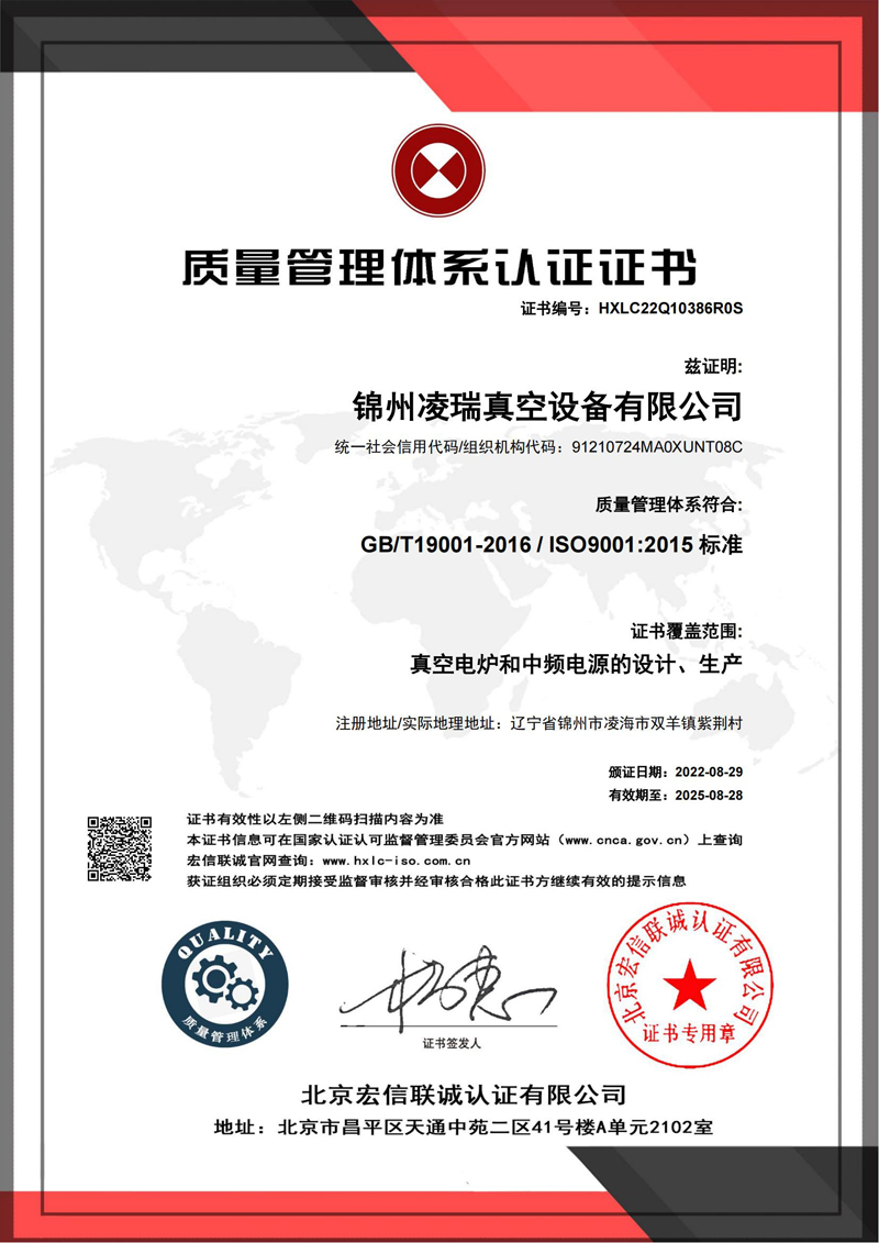 質(zhì)量管理體系證書(shū)中文